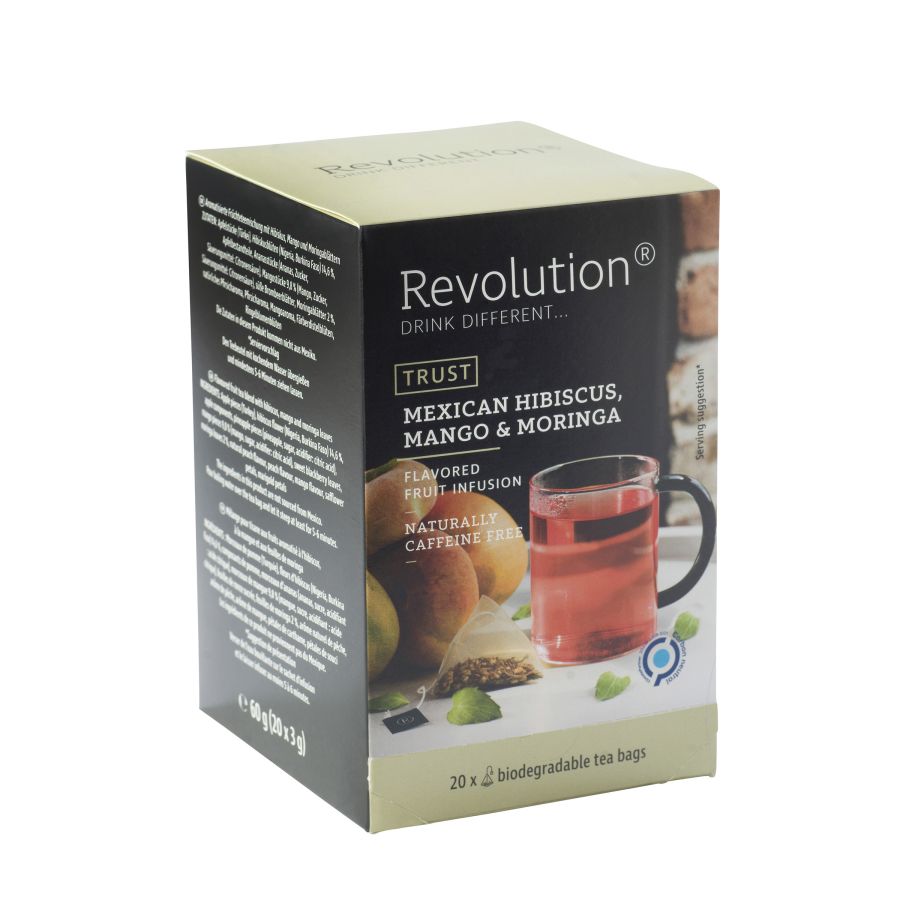 Soft and fruity with a surprising hint: Our fruit tea blend combines fresh-sweet mangos and earthy moringa with the tart notes of white hibiscus - wow! Caffeine Free.